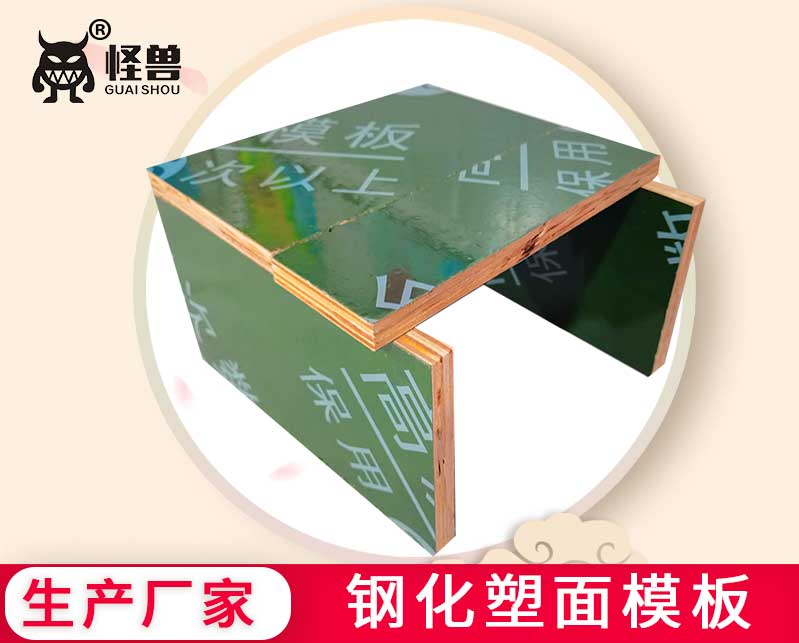 怪獸木業(yè)有限公司研發(fā)生產(chǎn)塑面模板,采用鋼化塑面模板技術(shù)生產(chǎn)的覆塑建筑模板、土豪金鋼化膜塑面建筑模板保用周轉(zhuǎn)33次。