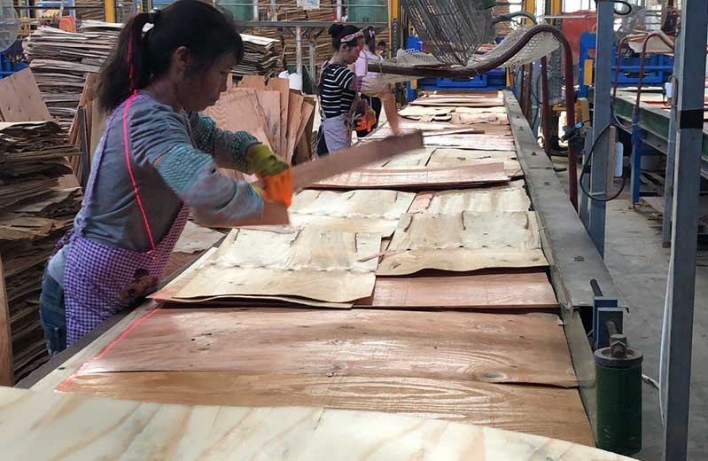 都說建筑模板質(zhì)量好不好,關(guān)鍵在于芯板,怪獸木業(yè)建筑模板內(nèi)芯緊實飽滿,少有空芯現(xiàn)象,握釘力強,可加工鋸成小塊,模板堅硬厚實,承壓力強,使用次數(shù)多,這些優(yōu)良的品質(zhì)很大程度來自于,怪獸木業(yè)建筑模板制作過程中排板工序上下的功夫。